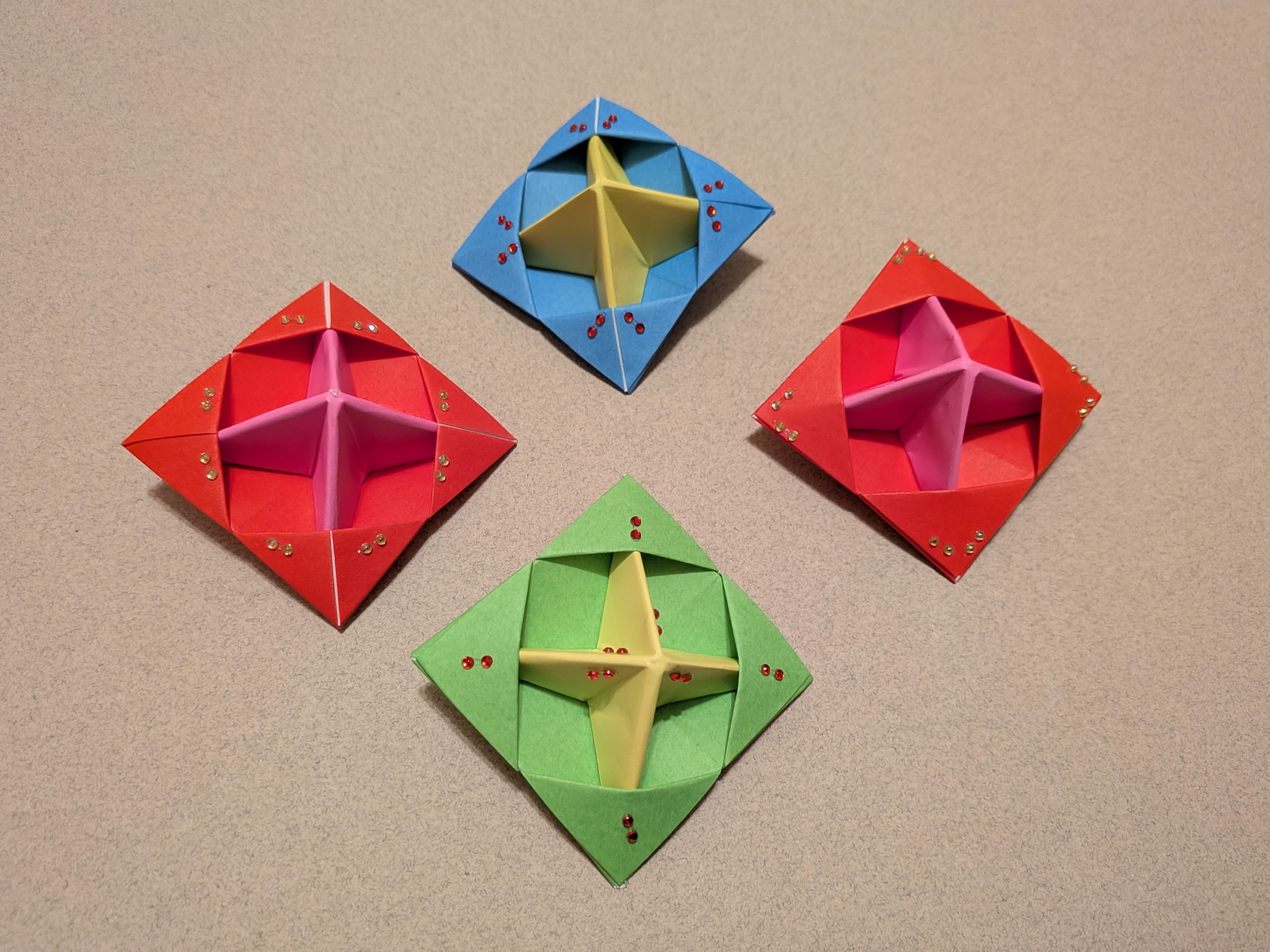 折り紙2枚で作る、簡単でよく回るコマです♪